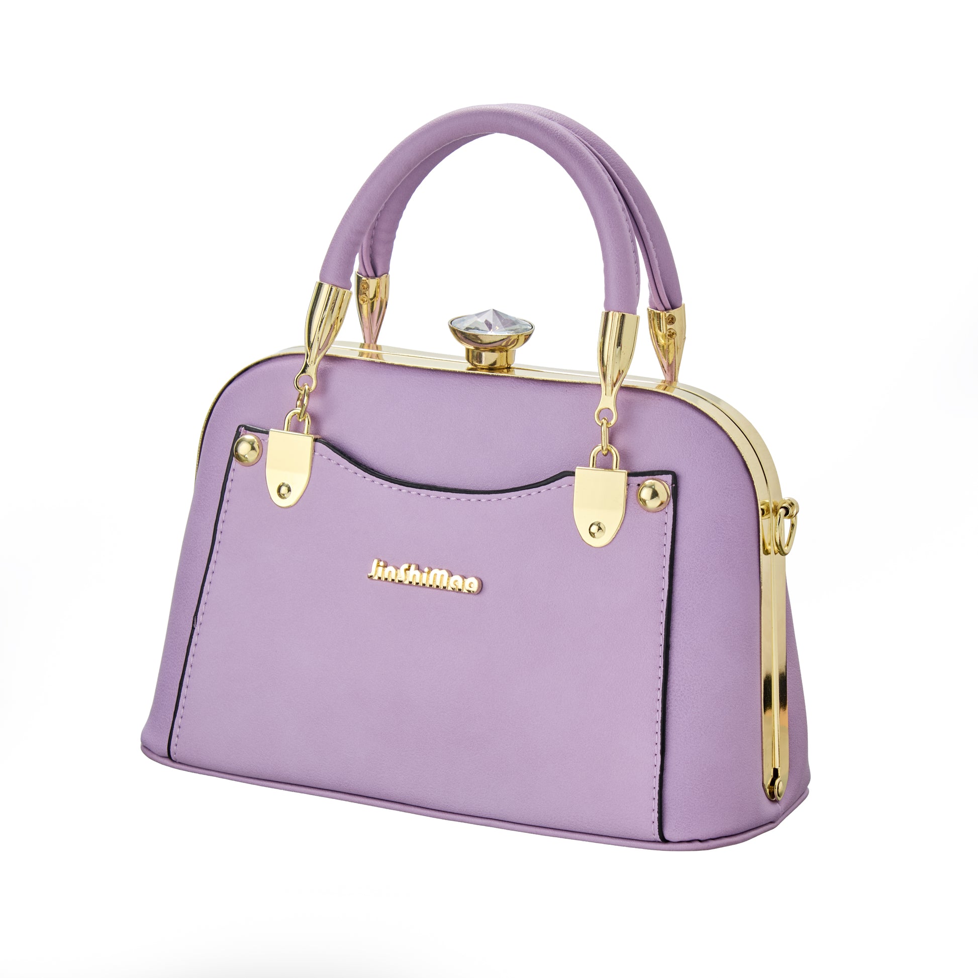 Add a splash of pastel elegance with the Lavender Luxe Mini Tote. Gold detailing and a gem-style clasp offer a glamorous finish, perfect for day-to-evening transitions.