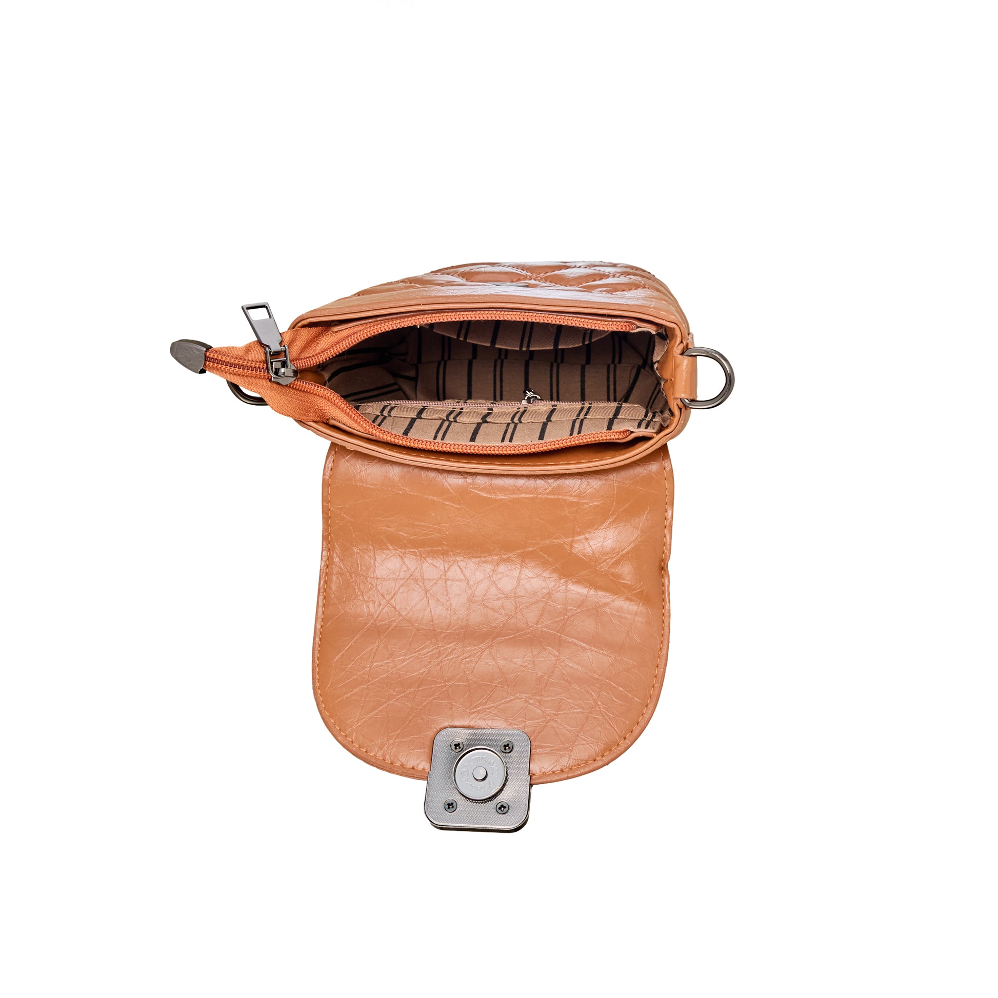 A modern mini satchel in mocha brown, quilted for texture and paired with a unique clasp to complete your chic outfit.