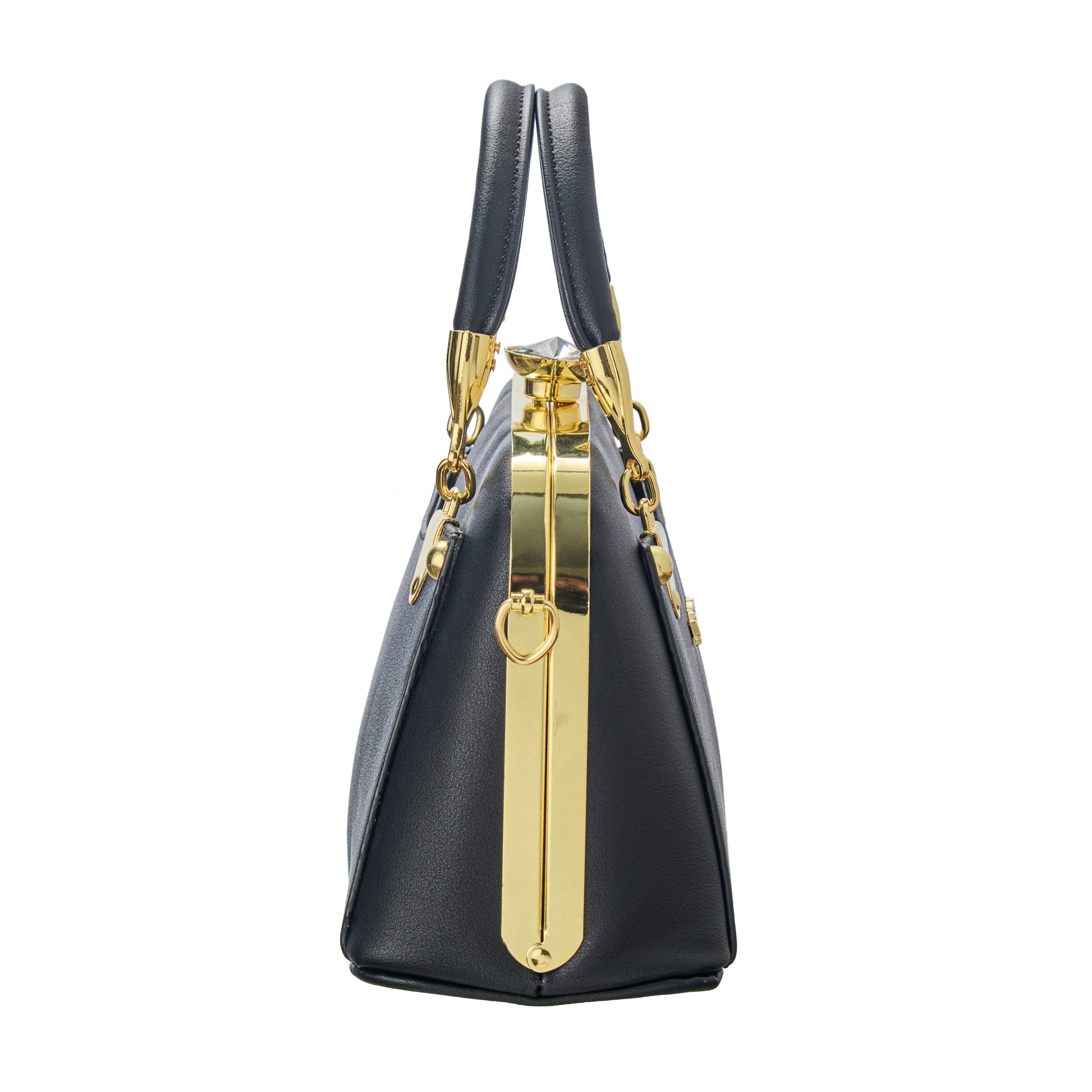 Command attention with timeless charm. The Noir Diamond Frame Bag blends sleek black leather with gold accents for a powerful, elegant statement piece.