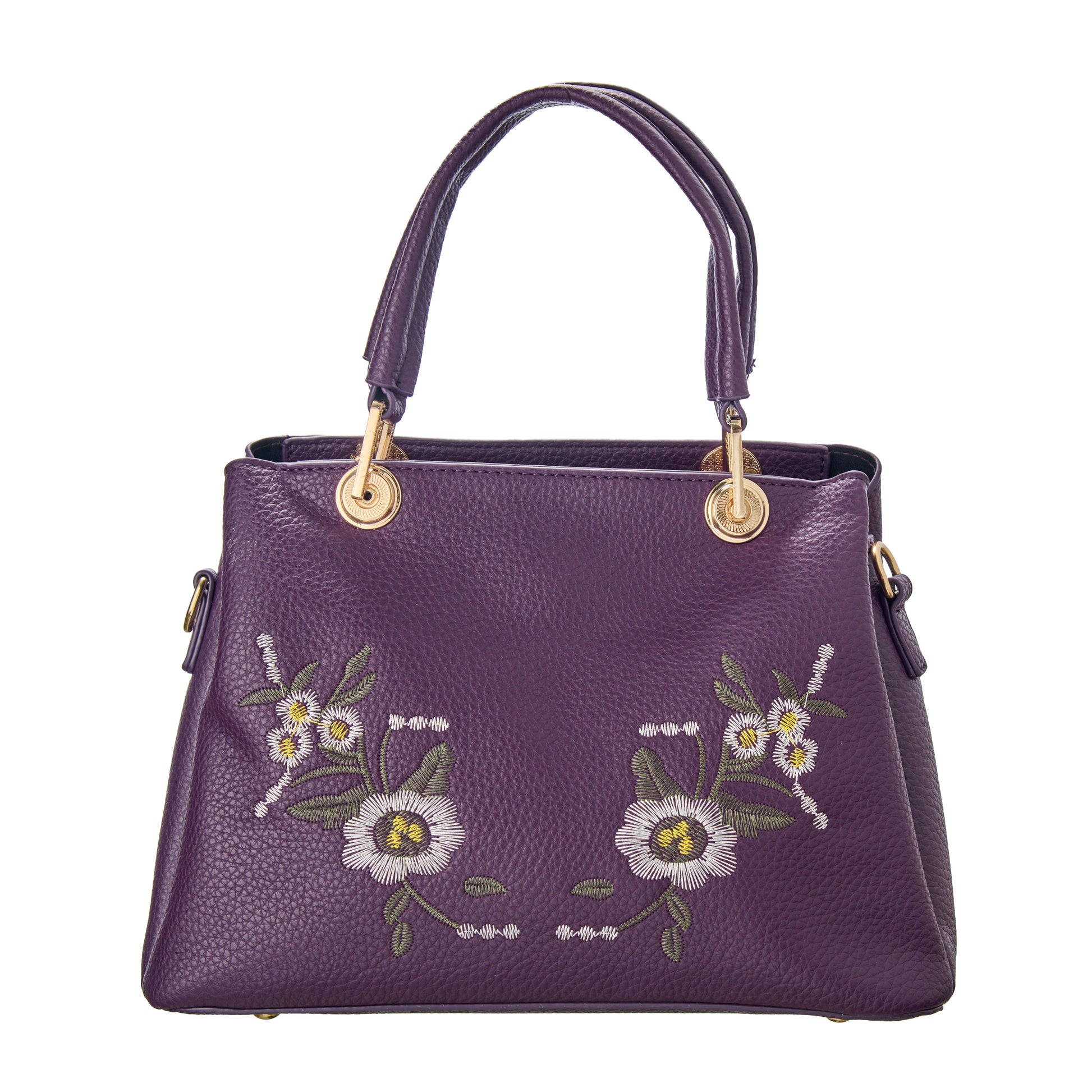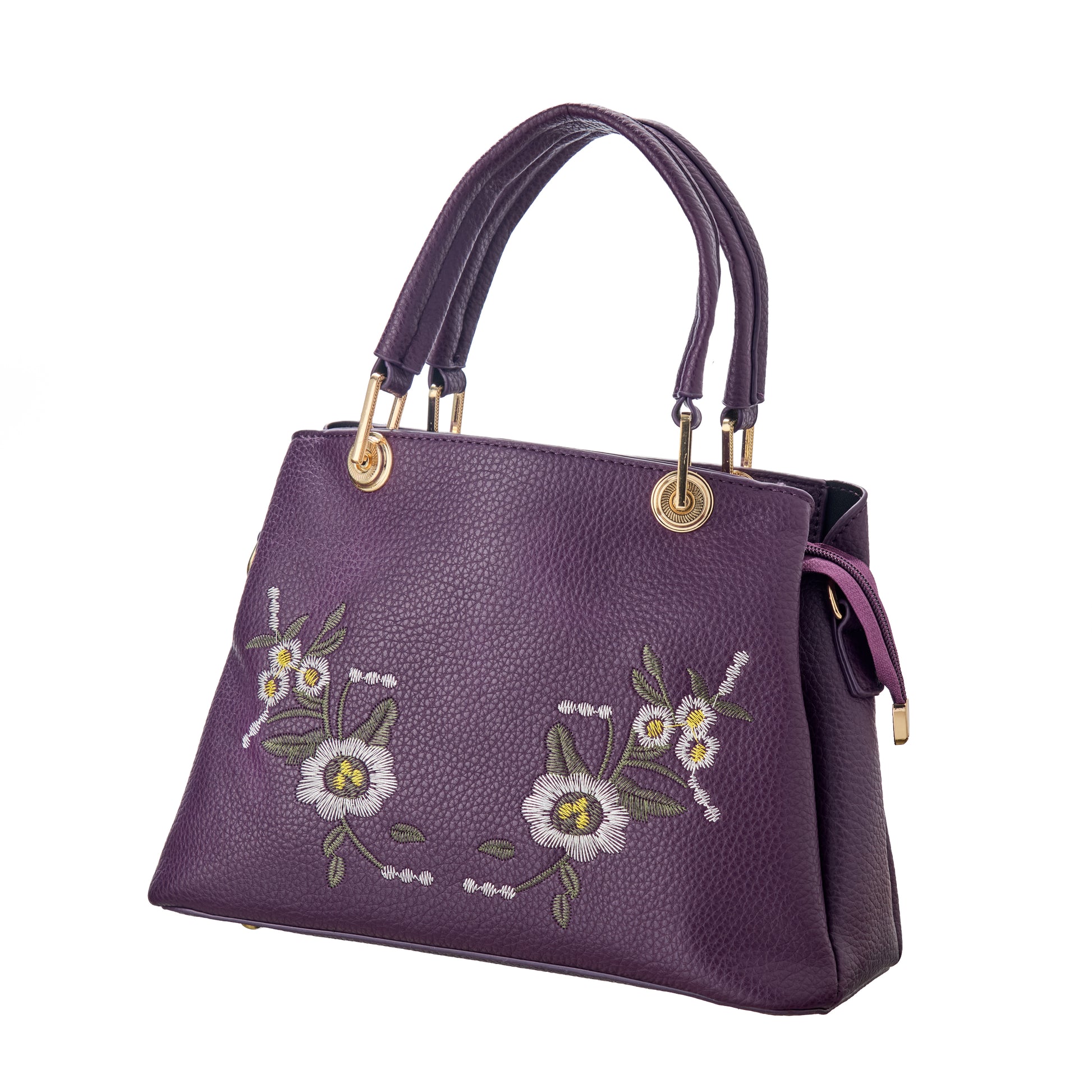 Stand out with this deep plum tote adorned with elegant white floral embroidery. A statement piece that’s both bold and graceful.